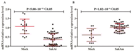 qRT–PCR analysis of the expression level of chitinase CcChiE1 in CcSakA gene silencing (SakAi) transformants (A) and CcSakA phosphomimicking mutant (SakAm) transformants (B) compared with mock transformants. A β-tubulin gene was used to standardize the mRNA level. Four mock transformants (circle), eight SakAi transformants (square in (A)), and eight SakAm transformants (square in (B)) were analyzed with at least three repeats of each transformant. Data are presented as the mean and standard error. Tests for significance were performed by a t-test in Microsoft Excel 2010.