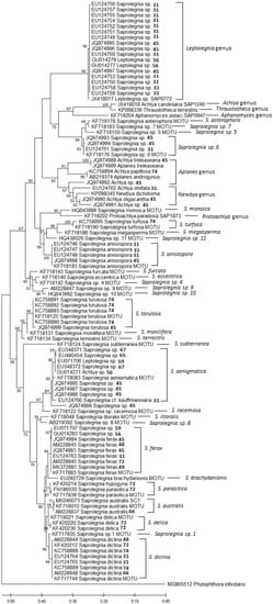 In addition, after an integrative analysis of all the sequences of Saprolegniales associated with amphibians, and by using the suggested MOTUs and the Saprolegnia spp. list from Magray et al. [28], we found potential incongruencies in the Magray’s ITS tree; thus, the authors suggest caution when choosing sequences for species identifications.