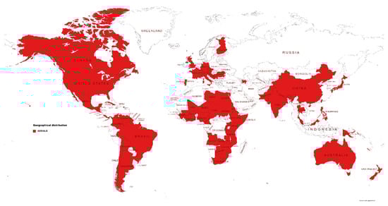 Figure 2. Global distribution of anthracnose leaf blight (ALB) and anthracnose stalk rot (ASR).