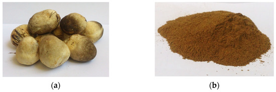V. volvacea; (a) fresh fruiting body and (b) dried powder.