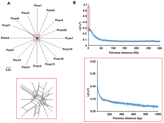 - Zhang, C.; Dong, S.S.; Xu, J.Y.; He, W.M.; Yang, T.L. PopLDdecay: A fast and effective tool for linkage disequilibrium decay analysis based on variant call format files. Bioinformatics 2019, 35, 1786–1788. [Google Scholar] [CrossRef]