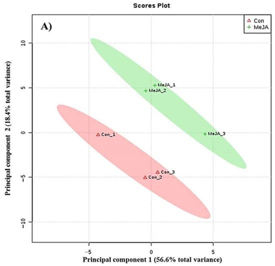3.3. GC-MS Based Metabolomics Analysis Following MeJA Elicitation