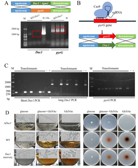 3.5. The Phenotypes Assay of Dac1 Gene Knockout and In-Situ Complementation Mutants in Aspergillus niger SH2