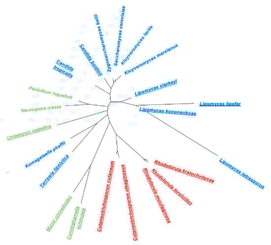 Oleaginous yeasts belong to the two phyla within the kingdom Fungi, Ascomycota and Basidiomycota. The diversity of oleaginous yeasts is observed in the phylogenetic tree prepared for biotechnologically relevant yeasts (Figure 1).
