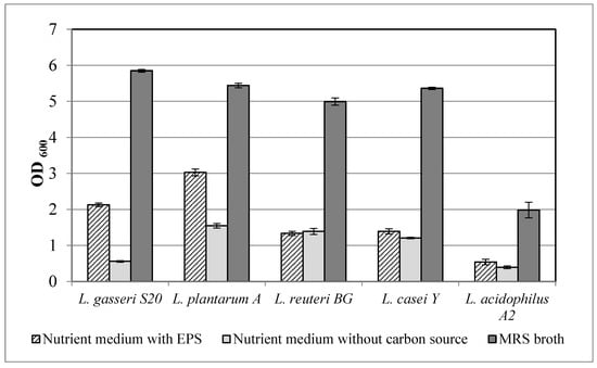 2.7.2. Prebiotic Activity of Crude Exopolysaccharides
