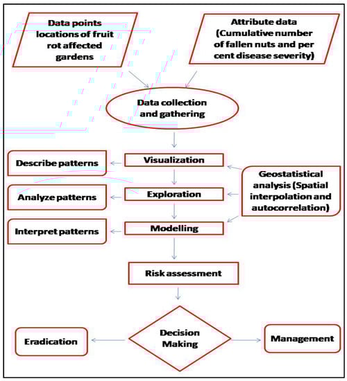 Hence, there is a need to understand the level of the primary inoculum and its distribution between different survival sites. The description of the fruit rot epidemics regarding space and time scales in arecanut-growing areas may provide valuable information on the pathogen dissemination and epidemiological consequences. These kinds of studies are lacking at a regional scale in major arecanut-growing areas. Similar studies have been conducted in other plantation crops to describe the spatio-temporal patterns of black pod rot in cocoa at the regional scale in Cameroon. Recently, the spatial and temporal patterns of black pod rot disease were investigated in cocoa farms where the pathogen was already well established [25,26]. Further, experiments have mainly concentrated on point of infection on the pods by the pathogen in Nigeria [27], Brazil [28], the Solomon Islands [29] and the Ivory Coast [30].