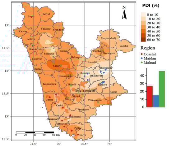 PDI = Percentage Disease Intensity; D1 and D2 represent dummy variables for the Malnad and coastal regions, respectively; whereas, D3–D14 indicted the dummy variables from 6th to 18th weeks, and D15 described the dummy variable for year.