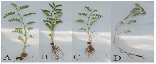 Chickpea yield losses owing to F. oxysporum range from 10% to 90% globally and can reach 100% under favorable environmental conditions [7]. F. oxysporum can infect chickpea plants at any stage of development [8]. Its chlamydospores penetrate the roots, occupy, and metastasize in the xylem, and cause wilting and eventually death of chickpea plants. It produces specific mycotoxins that cause destructive diseases in a variety of crops. F. oxysporum has been reported to cause wilting diseases of chickpea, pea, tomato, sweet potato, and banana [9].