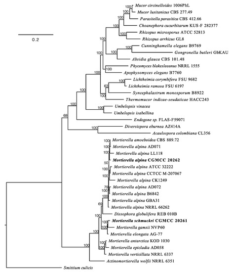 | Mortierella alpina * | CGMCC 20262 | SAMN29490473 | This study |