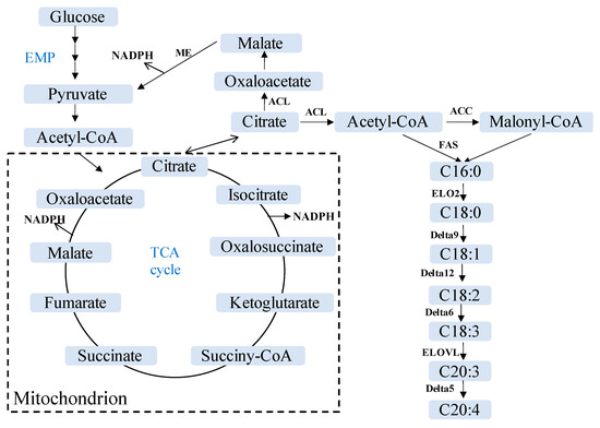 - Chang, L.; Tang, X.; Lu, H.; Zhang, H.; Chen, Y.Q.; Chen, H.; Chen, W. Role of adenosine monophosphate deaminase during fatty acid accumulation in oleaginous fungus Mortierella alpina. J. Agric. Food Chem. 2019, 67, 9551–9559. [Google Scholar] [CrossRef] [PubMed]