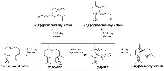 - Lopez-Gallego, F.; Agger, S.A.; Abate-Pella, D.; Distefano, M.D.; Schmidt-Dannert, C. Sesquiterpene Synthases Cop4 and Cop6 from Coprinus cinereus: Catalytic Promiscuity and Cyclization of Farnesyl Pyrophosphate Geometric Isomers. ChemBioChem 2010, 11, 1093–1106. [Google Scholar] [CrossRef] [PubMed]