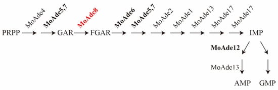 APA StyleLiu, M.-Y., Sun, L.-X., Qian, H., Zhang, Y.-R., Zhu, X.-M., Li, L., Liang, S., Lu, J.-P., Lin, F.-C., & Liu, X.-H. (2022). De Novo Purine Nucleotide Biosynthesis Pathway Is Required for Development and Pathogenicity in Magnaporthe oryzae. Journal of Fungi, 8(9), 915. https://doi.org/10.3390/jof8090915