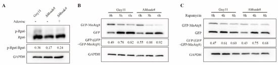 3.7. Deletion of MoAde8 Negatively Regulates TOR Kinase Activity