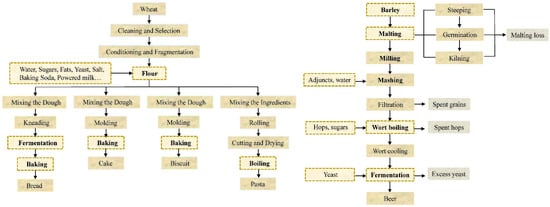 Cereal and cereal-based products constitute the majority of the world’s dietary energy and nutrients, accounting for more than half of the average per capita caloric consumption and nearly half of the average per capita protein intake [,]. Cereal grains have a long history in the brewing industry as raw ingredients. They can also be processed into flours that are utilized in the production of bread, pasta, cake, and biscuits [,]. Additionally, cereal by-products play a crucial function in animal feeding because they supply the required energy and protein for the growth of livestock. It was estimated that approximately 2799 million tons of cereal will be produced in 2021, and cereal production has a significant impact on global food security [].