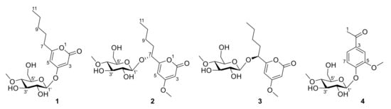 Ma, Z.-L.; Yu, Z.-P.; Zheng, Y.-Y.; Han, N.; Zhang, Y.-H.; Song, S.-Y.; Mao, J.-Q.; Li, J.-J.; Yao, G.-S.; Wang, C.-Y. Bioactive Alpha-Pyrone and Phenolic Glucosides from the Marine-Derived Metarhizium sp. P2100. J. Fungi 2023, 9, 28. https://doi.org/10.3390/jof9010028