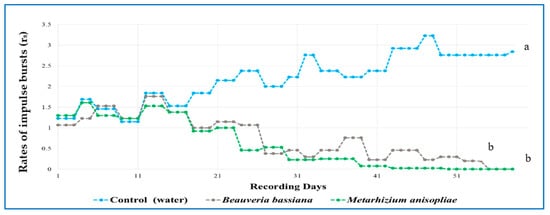 | B. bassiana (BbSA–1) | 19.70 ± 0.23a | 23.66 ± 0.26b |