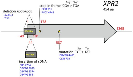 - Neuveglise, C.; Chalvet, F.; Wincker, P.; Gaillardin, C.; Casaregola, S. Mutator-like element in the yeast Yarrowia lipolytica displays multiple alternative splicings. Eukaryot. Cell 2005, 4, 615–624. [Google Scholar] [CrossRef][Green Version]