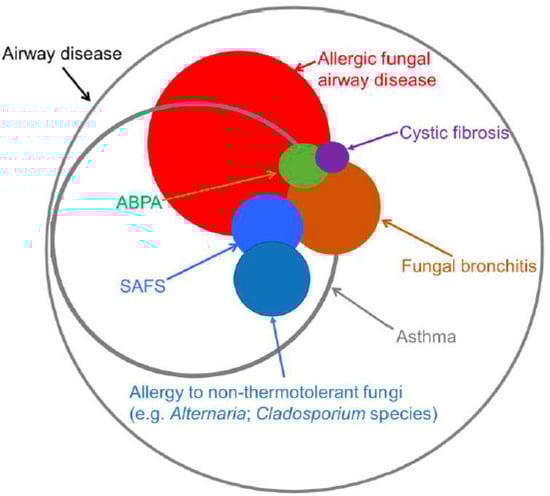Concept of an overlapping spectrum of allergic fungal airway diseases. Adapted from reference []. ‘Journal of Asthma and Allergy 2021:14 557–573’, originally published by and used with permission from Dove Medical Press Ltd.