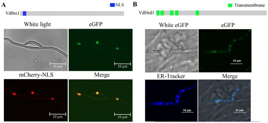 3.3. Sequence Features and Subcellular Localization of VdBre1 and VdHrd1