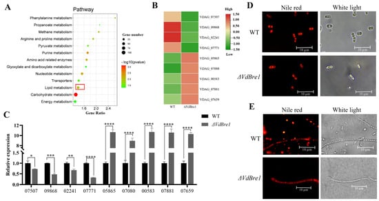 3.5. RNA Sequencing Analyses Unveil the Roles of VdBre1 and VdHrd1 in V. dahliae
