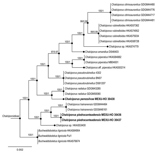- Xu, C.; Liang, Z.-Q.; Xie, H.-J.; Jiang, S.; Fu, X.-H.; Zeng, N.-K. Two new species of Chalciporus (Boletaceae, Boletales) from tropical China. Mycol. Prog. 2021, 20, 1573–1582. [Google Scholar] [CrossRef]