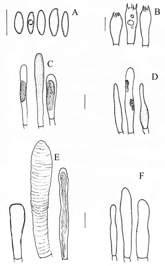 - Haelewaters, D.; Dima, B.; Abdel-Hafiz, B.I.I.; Abdel-Wahab, M.A.; Abul-Ezz, S.R.; Acar, I.; Aguirre-Acosta, E.; Aime, M.C.; Aldemir, S.; Ali, M.; et al. Fungal Systematics and Evolution 6. Sydowia 2020, 72, 271–296. [Google Scholar]