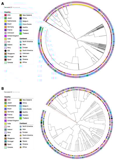 - Letunic, I.; Bork, P. Interactive Tree of Life (iTOL) v5: An Online Tool for Phylogenetic Tree Display and Annotation. Nucleic Acids Res. 2021, 49, W293–W296. [Google Scholar] [CrossRef]