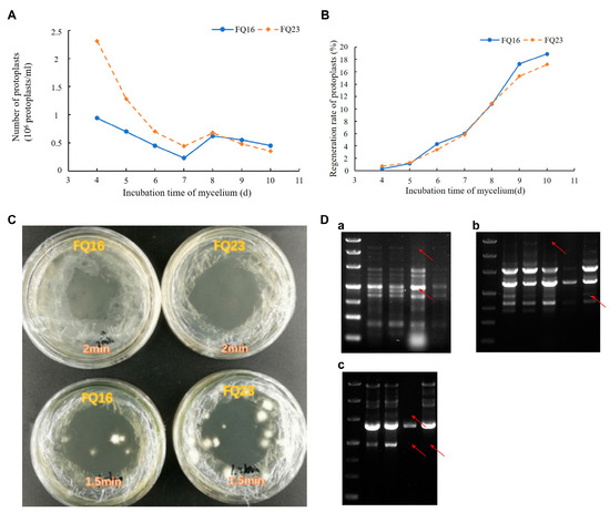 - He, B.; You, L.; Ye, Z.; Guo, L.; Lin, J.; Wei, T.; Zheng, Q. Construction of novel cold-tolerant strains of Volvariella volvacea through protoplast fusion between Volvariella volvacea and Pleurotus eryngii. Sci. Hortic. 2018, 230, 161–168. [Google Scholar] [CrossRef]