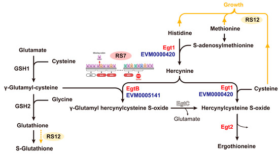 3.5.3. Effect of Gene Mutation on the EGT Synthesis Pathway