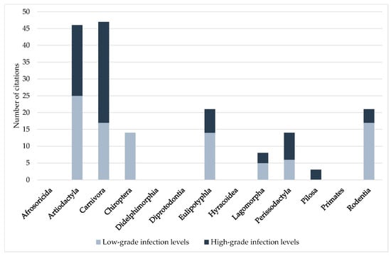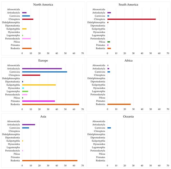 - Rodentia order: Short-tailed field vole [88], bank vole, yellow-necked field mouse [71], lowland paca, Guyenne spiny-rat [74], European woodmouse [88,117], mouse [122], Mount Banahao forest mouse, Neill’s Leopoldamys, long-tailed giant rat, shrew mouse, Malayan field rat, Mueller’s giant Sunda rat, hoary bamboo rat [118], greater bandicoot rat, Savile’s bandicoot rat, Berdmore’s Berylmys, Bower’s white-toothed rat, long-tailed giant rat, Indomalayan maxomys, Ryukyu mouse, fawn-colored mouse, Cook’s mouse, chestnut white-bellied rat, Indochinese forest rat, rice-field rat, Polynesian rat, white-footed Indochinese rat, lesser rice field rat, Oriental house rat, lesser bamboo rat [118,119], brown rat [6,118,119,123,124], river rat [71,127], garden dormouse [88], Finlayson’s squirrel [127], and Guianan squirrel [74].