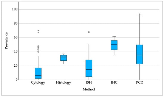 3.2.1. Pneumocystis Prevalence in Studies with Sample Sizes > 10 Samples