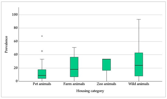 | Prevalence in wild animals | 332 | Sample sizes ≤ 10 samples (n = 180) | 133 |