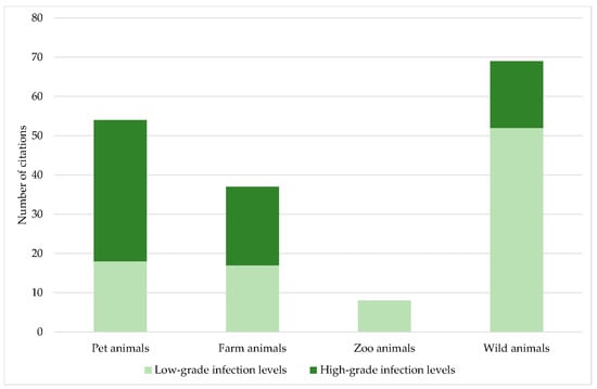 | Level of infection in wild animals | 332 | Only negative results (n = 88) | 58 |