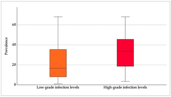 | Prevalence x level of infection | 187 | Only negative results (n = 23) | 60 |