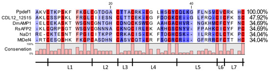 3.2. Ppdef1 Forms the Conserved Cysteine Stabilised αβ Motif Typical of Plant Defensins
