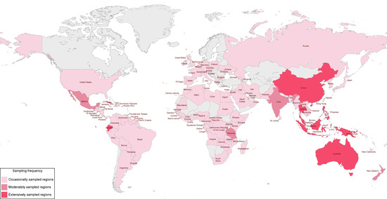 | Genus | Type Species | Host | Country/Region | Sequence Data 1 | Reference |