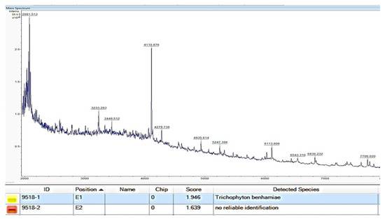 - Hattori, N.; Kaneko, T. A case of kerion celsi due to Arthroderma benhamiae identified by DNA sequences of nuclear ribosomal internal transcribed spacer 1 regions. Med. Mycol. 2003, 41, 249–251. [Google Scholar] [CrossRef] [PubMed][Green Version]