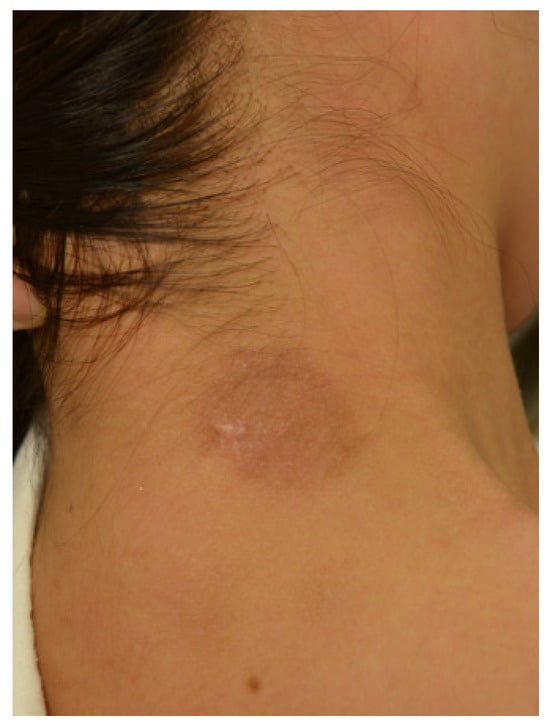 - Sujino, K.; Oouchi, Y. A case of atypical form dermatophytosis caused by Arthroderma benhamiae. Rinsho Derma 2012, 54, 664–665. (In Japanese) [Google Scholar]