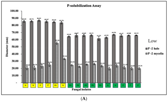 - Munir, E.; Yurnaliza, Y.; Lutfia, A.; Hartanto, A. Isolation and characterization of phosphate solubilizing activity of endophytic fungi from Zingiberaceous species. OnLine J. Biol. Sci. 2022, 22, 149–156. [Google Scholar] [CrossRef]