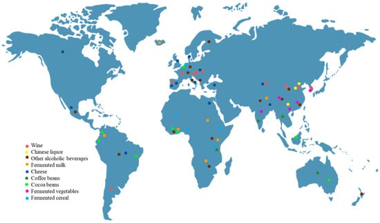 Distribution of spontaneously fermented foods involving P. kudriavzevii on a global scale.