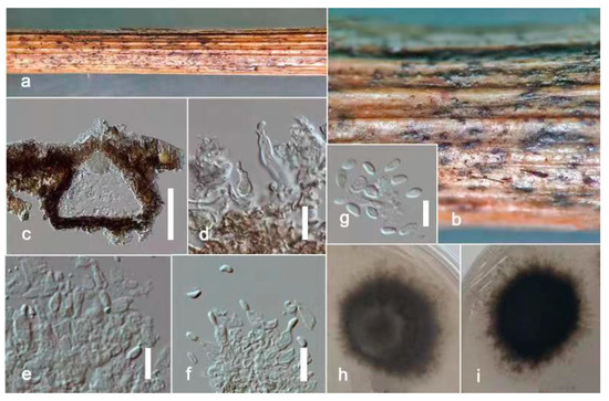 Microscopic mounts of fruiting structures in sterilized tap water were examined and photographed using a stereomicroscope fitted with a camera (ZEISS Axiocam 208). The micromorphological characteristics such as the structure of the conidiomatal wall, conidiogenous cells, and conidia were studied and photographed using a compound microscope (Nikon Eclipse 80i) fitted with a digital camera (Canon 450D). All microscopic measurements were made with the Tarosoft image framework (v. 0.9.0.7).