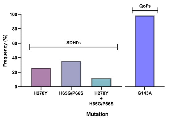 3.3. Molecular Characterization of SDHI-, QoI- and DMI-Resistant Isolates