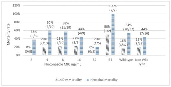 Figure 2. Correlation of fluconazole minimal inhibitory concentration with 14-day and in-hospital mortality.