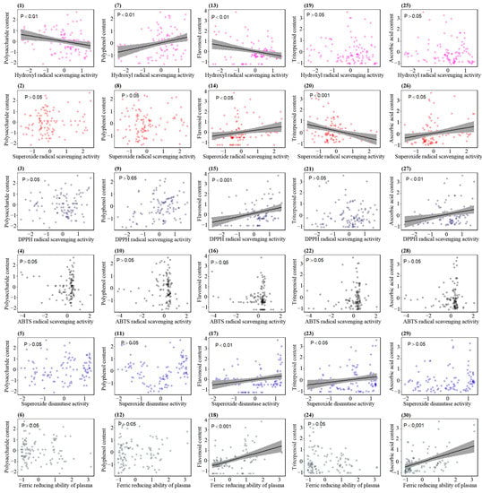 - Qian, H.; Zhao, B.T.; Chen, B.; Huang, X.D.; Zhu, Y.Y.; Lv, J. Relationship between the content of polysaccharides, flavonoids and polyphenols from the sporocarp of Phellinus linteus and the antioxidant activity. Sci. Technol. Food Ind. 2015, 12, 104–108. [Google Scholar] [CrossRef]