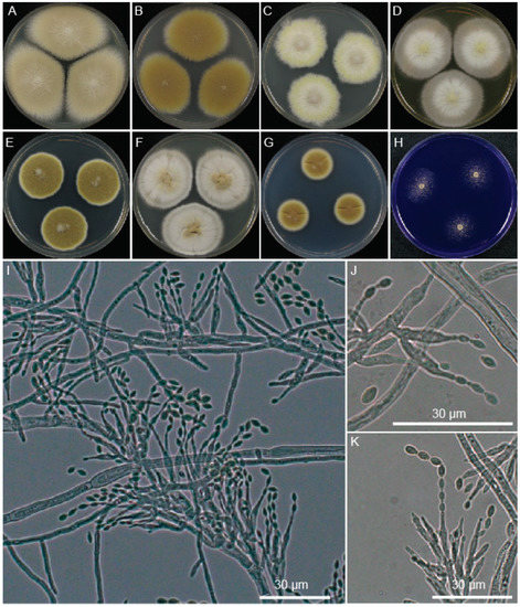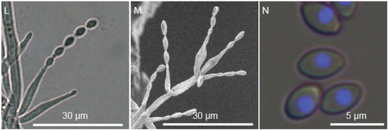 Micromorphology was examined using a standard slide culture procedure on PDA after 48 h at 30 °C.