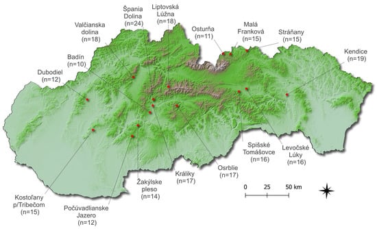 | Spišské Tomášovce | 5.82 ± 2.28 | 2.50–9.61 | 3.50 ± 1.23 | 0.48–4.43 |
