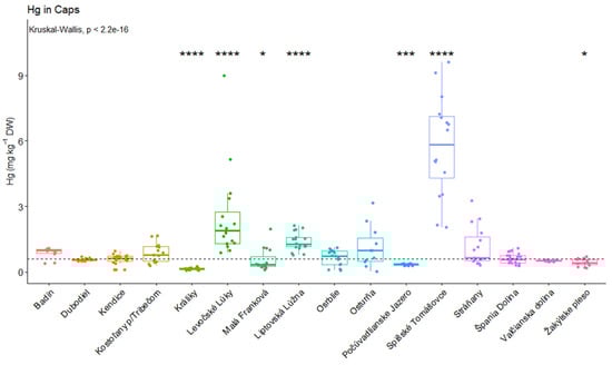 - Demková, L.; Árvay, J.; Hauptvogl, M.; Michalková, J.; Šnirc, M.; Harangozo, Ľ.; Bobuľská, L.; Bajčan, D.; Kunca, V. Mercury content in three edible wild-growing mushroom species from different environmentally loaded areas in Slovakia: An Ecological and human health risk assessment. J. Fungi 2021, 7, 434. [Google Scholar] [CrossRef]