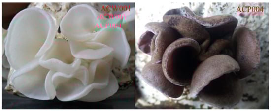 - Sheng, C. Studies on the Inheritance of Fruit Body Color and Molecular Markers of Color Traits in Pleurotus cornucopiae. Msater’s Thesis, Ji Lin Agricultural University, Changchun, China, 2012. [Google Scholar]