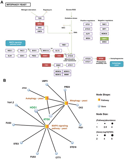 - Mao, K.; Wang, K.; Zhao, M.; Xu, T.; Klionsky, D.J. Two MAPK-signaling pathways are required for mitophagy in Saccharomyces cerevisiae. J. Cell. Biol. 2011, 193, 755–767. [Google Scholar] [CrossRef]