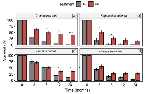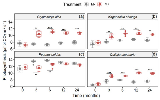 | Kageneckia oblonga | Time | 4, 40 | 28.37 | <0.001 |